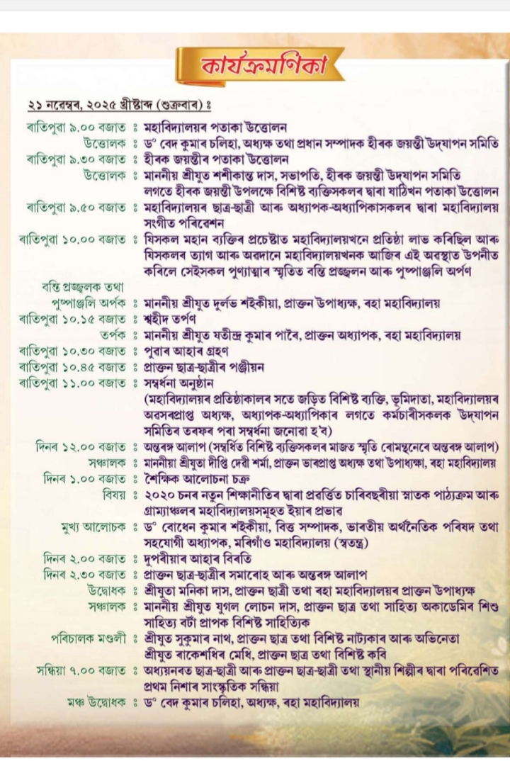 education to the poor, needy and socially disadvantaged group of students of Raha and its adjoining areas. Our vision is to serve the social needs and to uplift the living standards of the rural youths by imparting higher